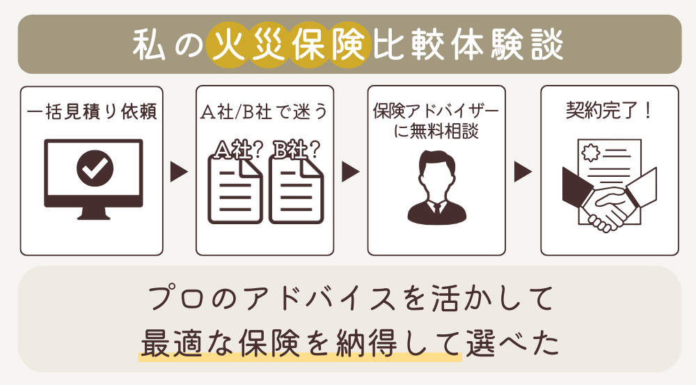 保険アドバイザーに相談しながら補償の内容を比べられるため、はじめての火災保険でも落ち着いて進められました。