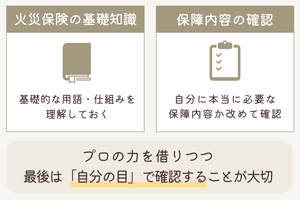 わからないことはそのままにせず、専門家に相談しながら進めましょう。自分の住まいに合った内容かどうかを確かめてから契約することが、後悔のない火災保険選びにつながります。