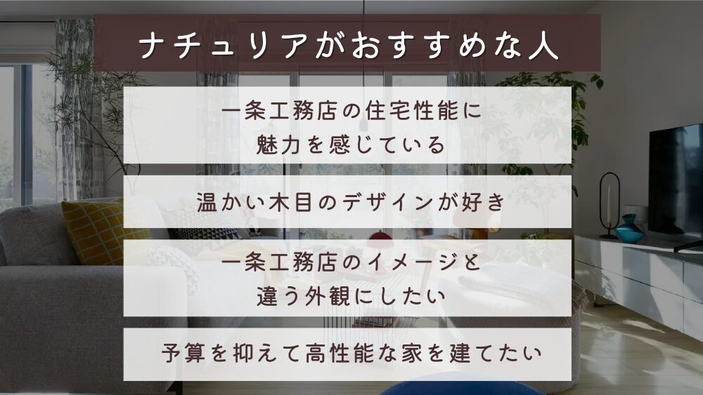 ナチュリアは、「一条の性能+低価格」を両立させたい方に向いています!