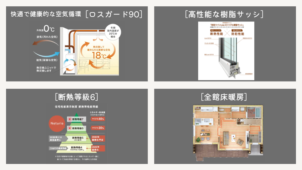 - 全館床暖房などの快適な住宅性能