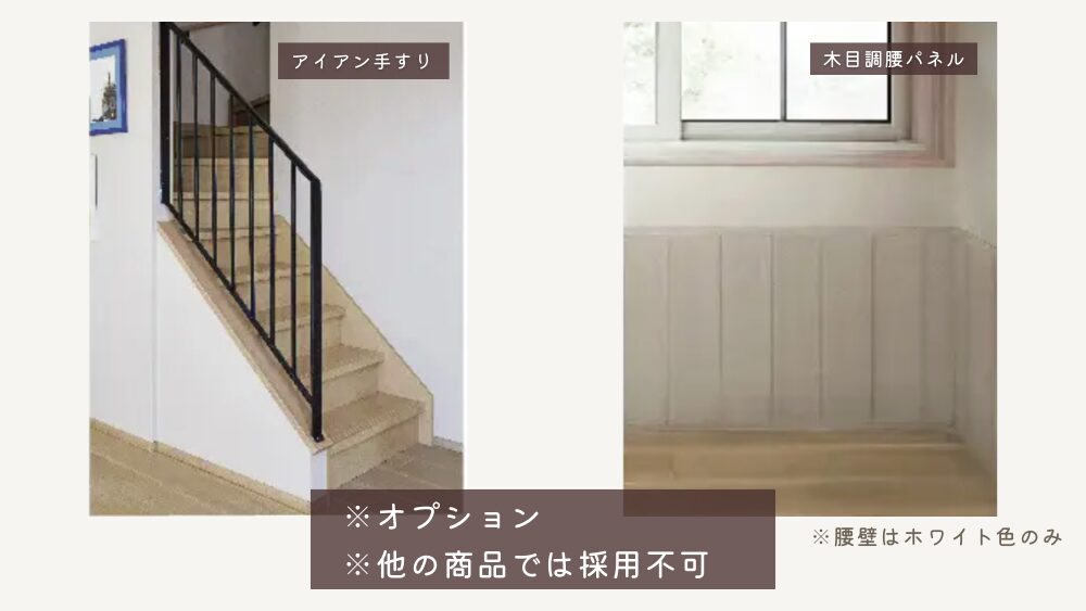 ナチュリアでは、北欧風の雰囲気を演出できるアイアン手すりや木目調の腰パネルを採用することができます。