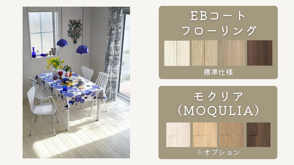 一条工務店で人気のフローリングである、モクリア(MOQULIA)もオプションで採用できます。
